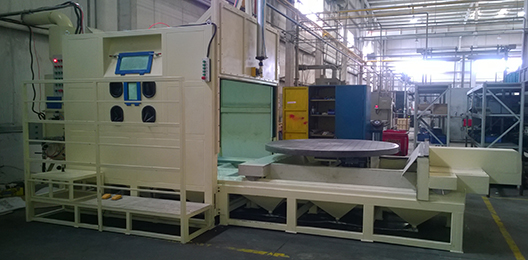 • 自動臺車轉(zhuǎn)盤模具噴砂機